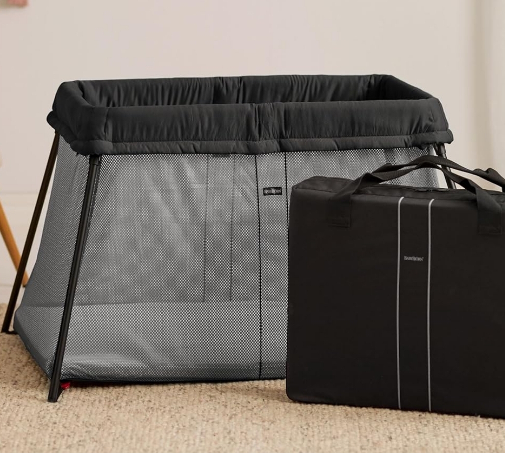Un lit de voyage pour bébé. Super facile à plier et à déplier. La taille d'une valise.