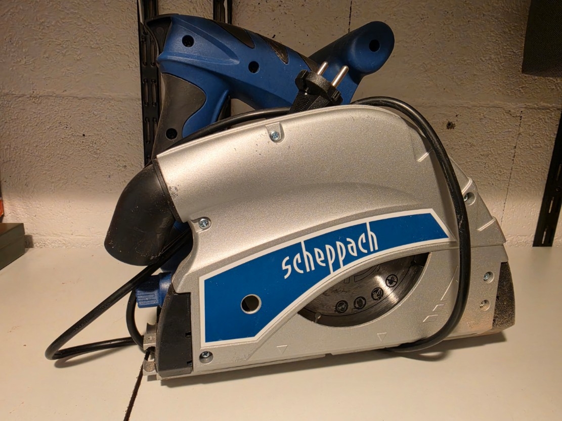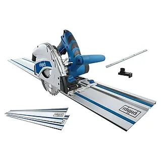 Rent this high-precision Scheppach PL55 plunge saw, perfect for splinter-free, perfectly straight cuts in kitchen worktops, doors, or sheets.