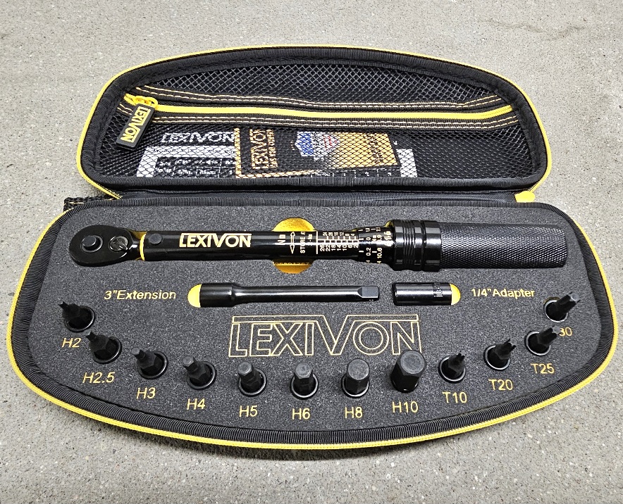 Clé dynamométrique pour vélo et moto, 1/4 pouce, incluant un jeu de 15 pièces de douilles hexagonales et d'embouts Torx, plage de mesure 2-20 Nm avec rallonge, pour vélos de route et plus encore.